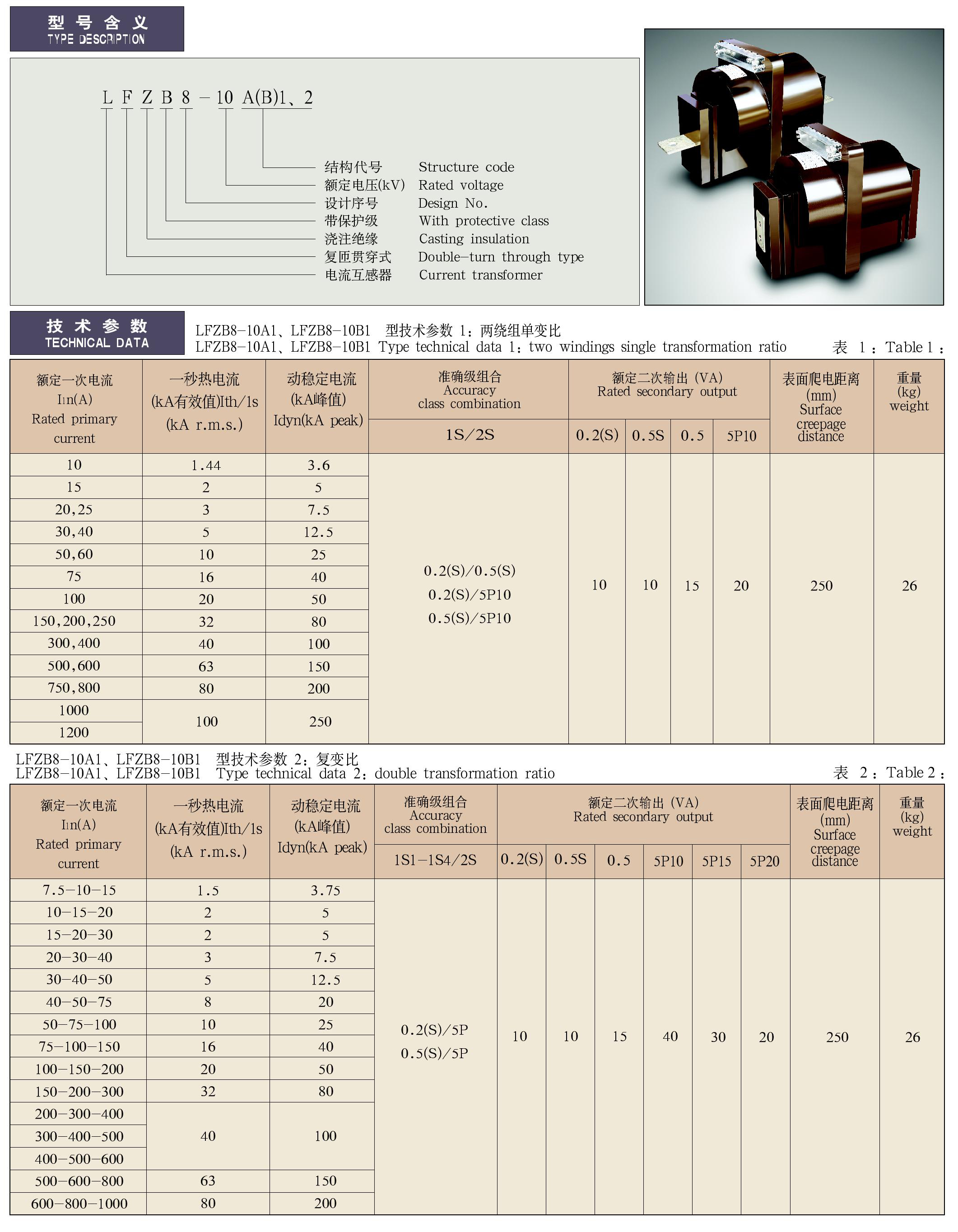 LFZB8-10A(B)1、2系列電流互感器
