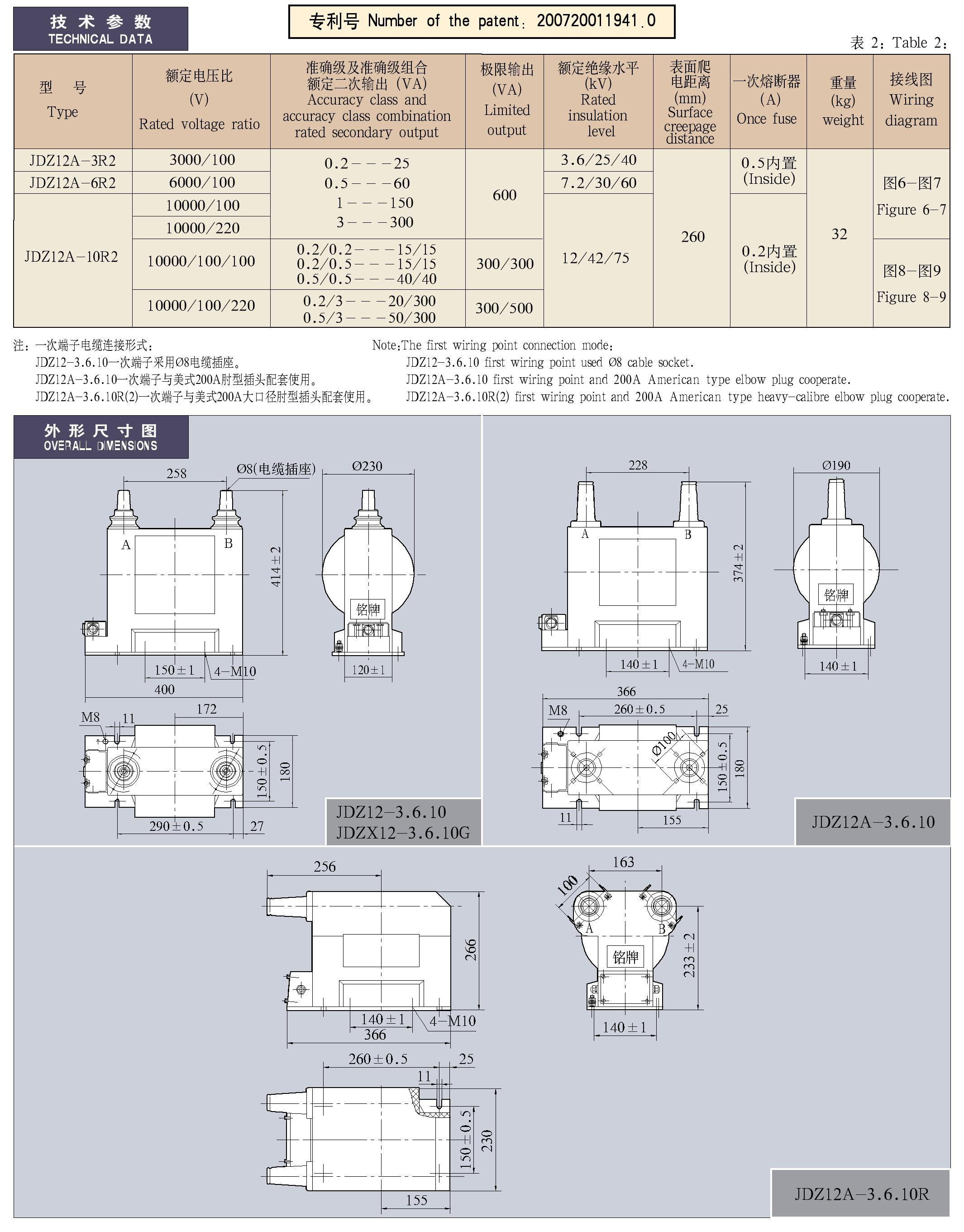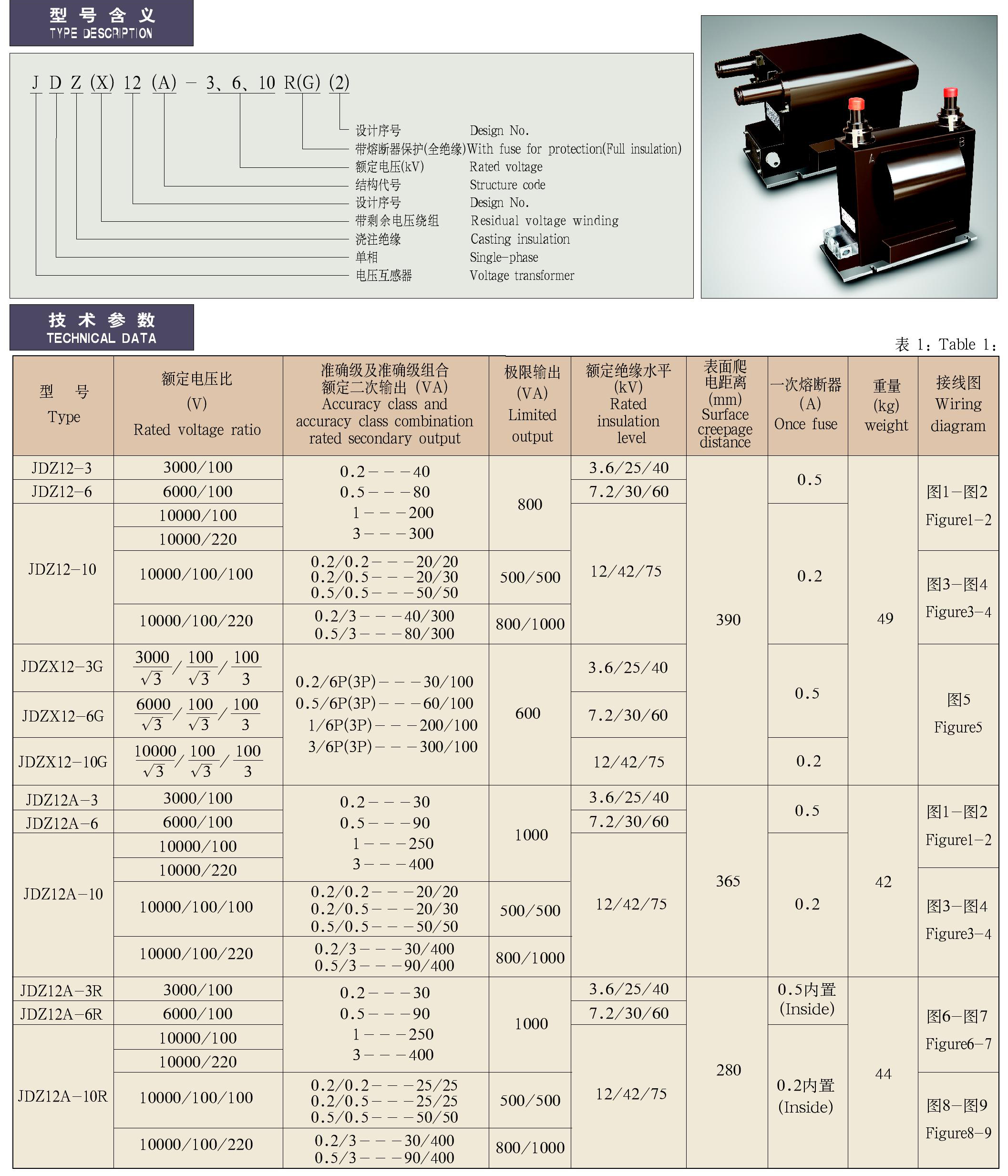JDZ(X)12(A)-3、6、10R(G)(2)系列全封閉肘頭座式(帶熔斷器)戶內單相電壓互感器
