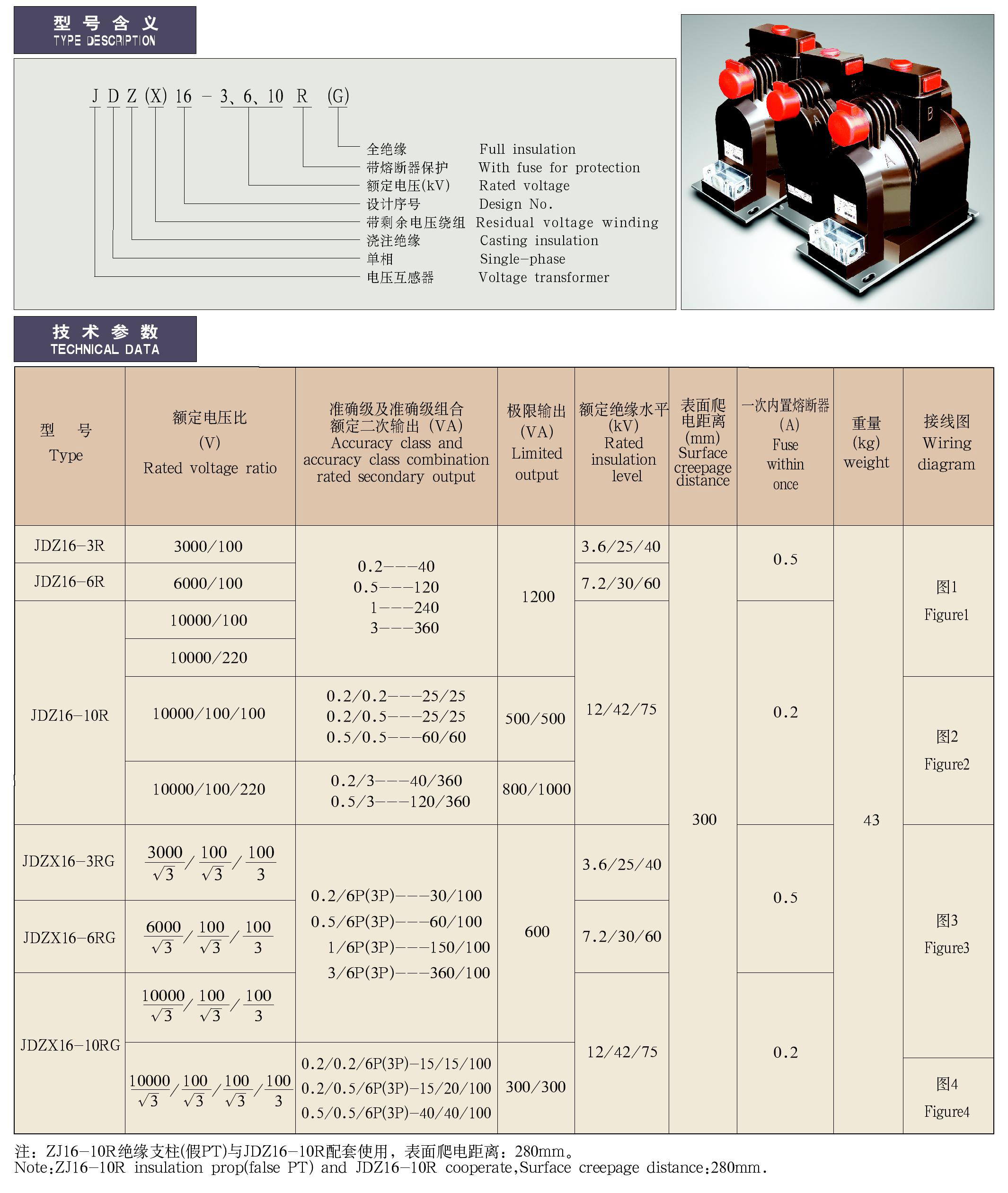 JDZ(X)16-3、6、10R(G)系列全封閉帶熔斷器戶(hù)內(nèi)單相電壓互感器及配套支柱