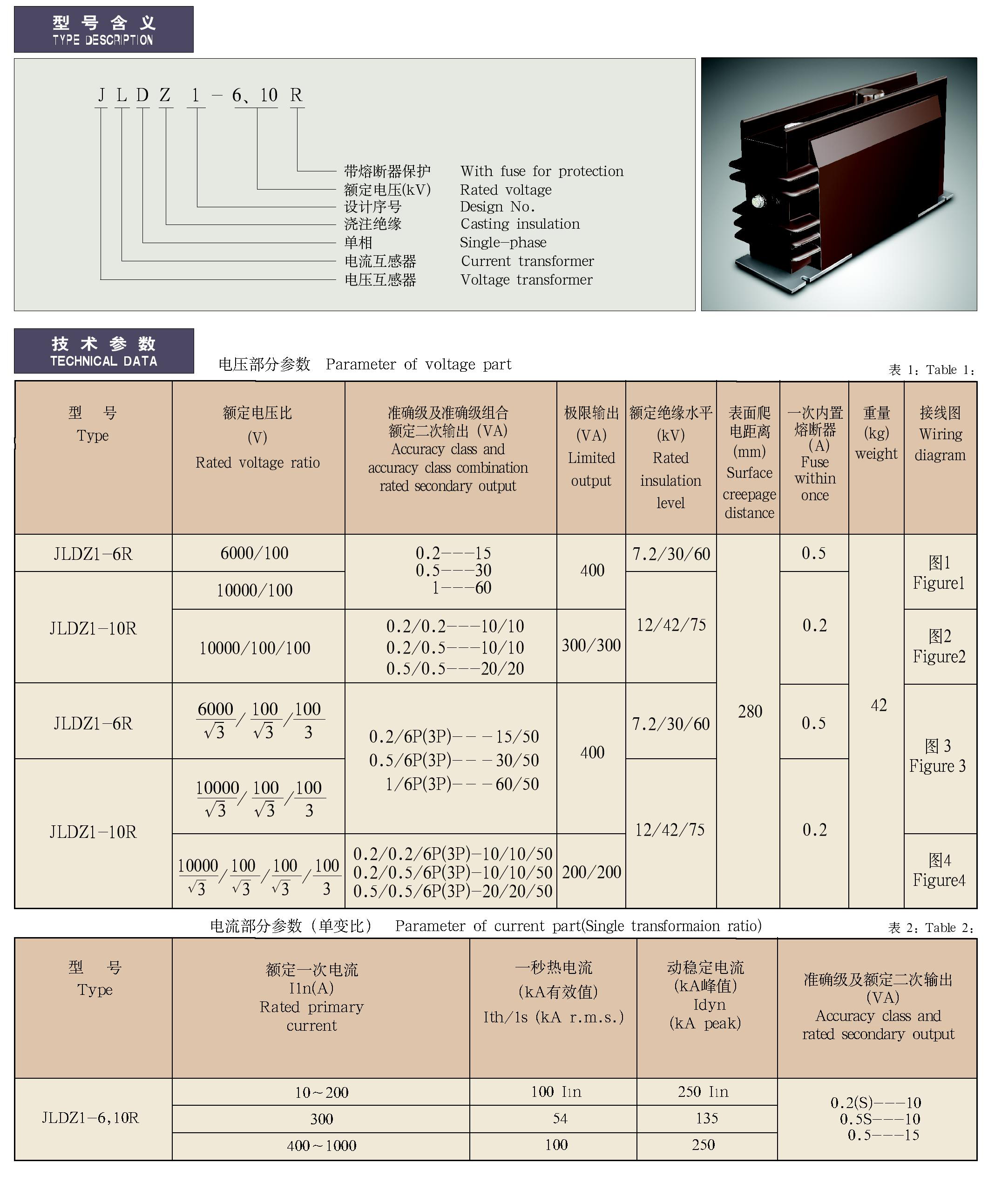 JLDZ1-6、10R系列全封閉帶熔斷器戶內單相組合互感器