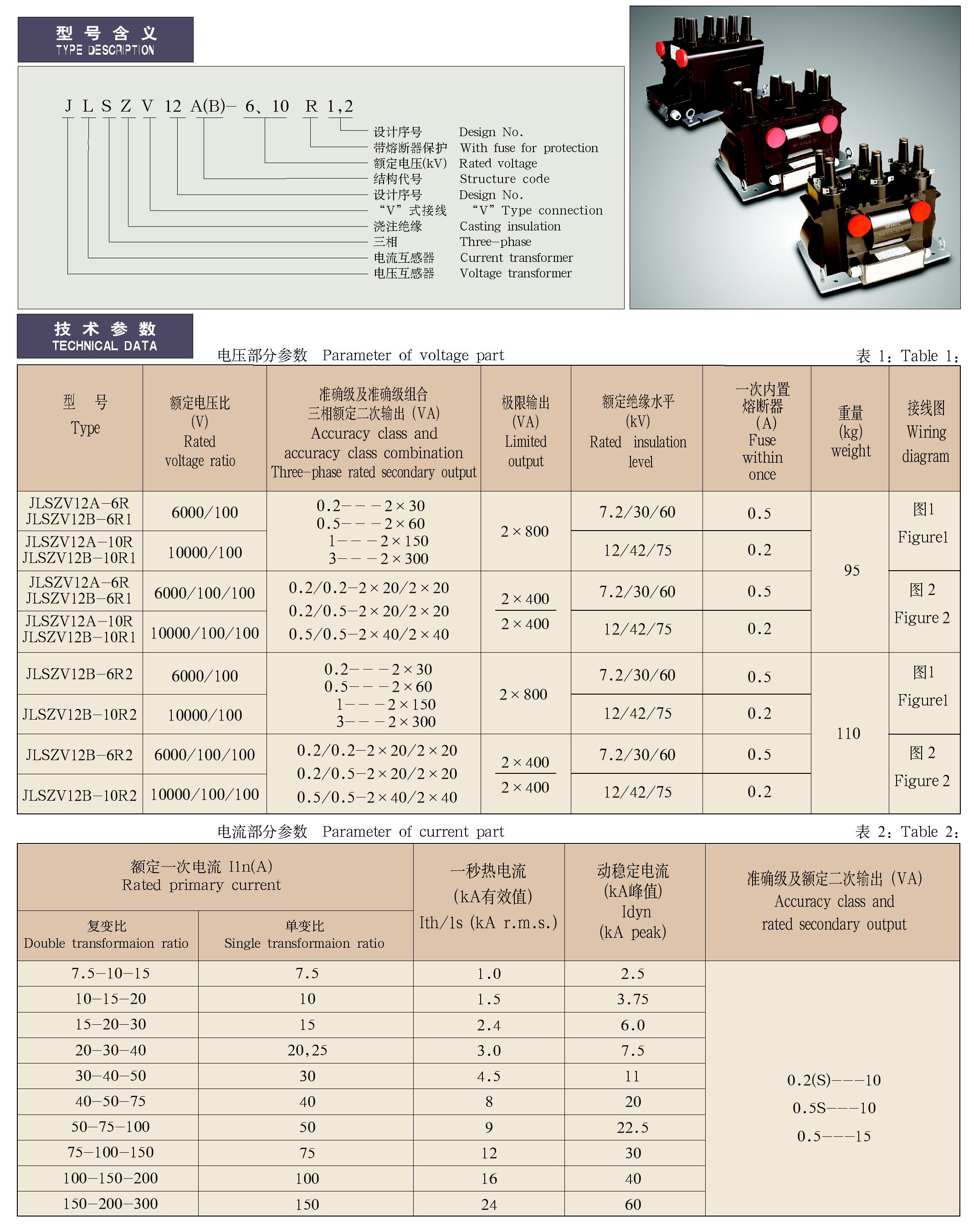 JLSZV12A(B)-6、10R1(2)系列全封閉肘頭座式帶熔斷器戶內(nèi)三相組合互感器
