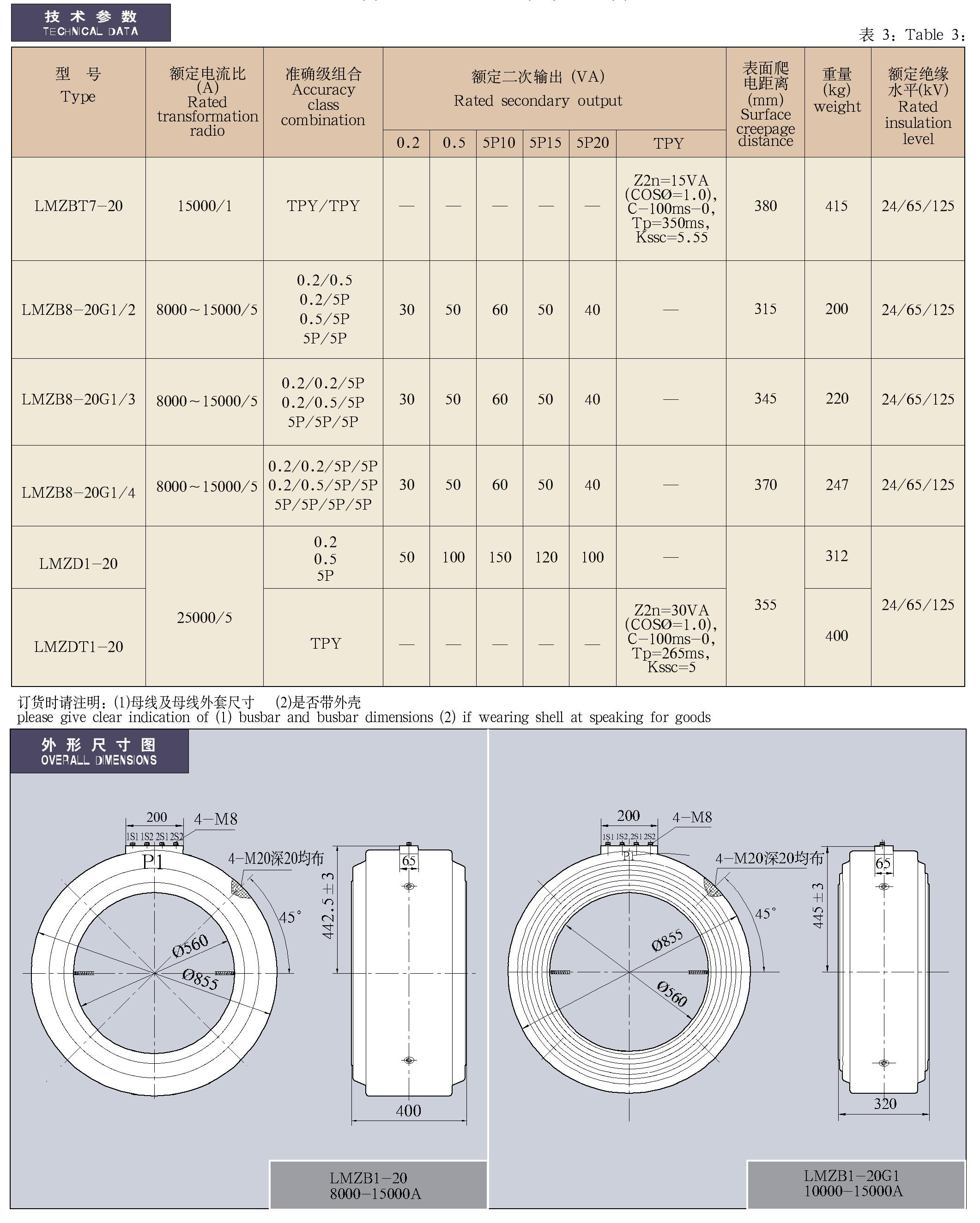 LMZB(D)(T)1(2、3、7、8)-20(G1、2、3、6)/2(3、4)系列封閉母線式電流互感器