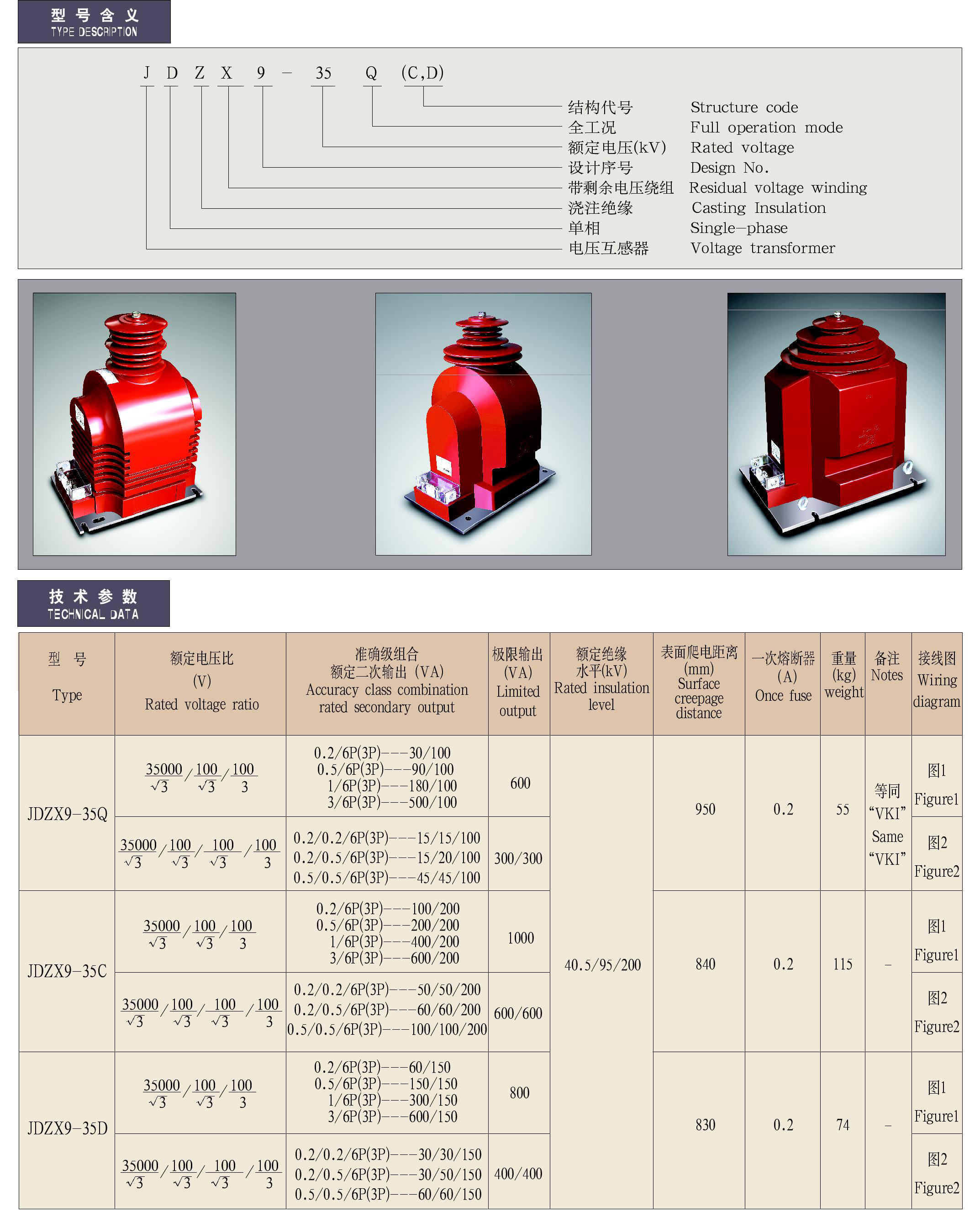 - JDZX9-35Q JDZX9-35C JDZX9-35D型全封閉戶內單相電壓互感器