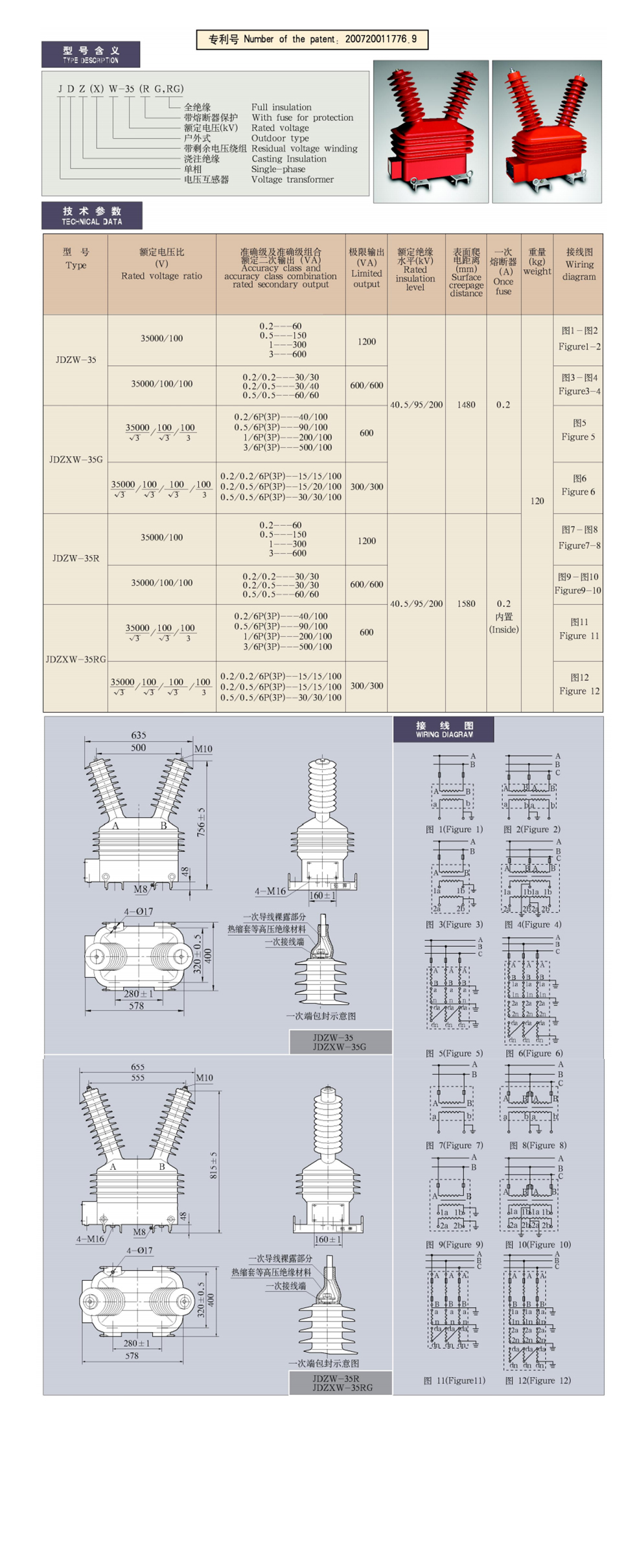 - JDZ(X)W-35(R、G、RG)型全封閉戶外單相電壓互感器
